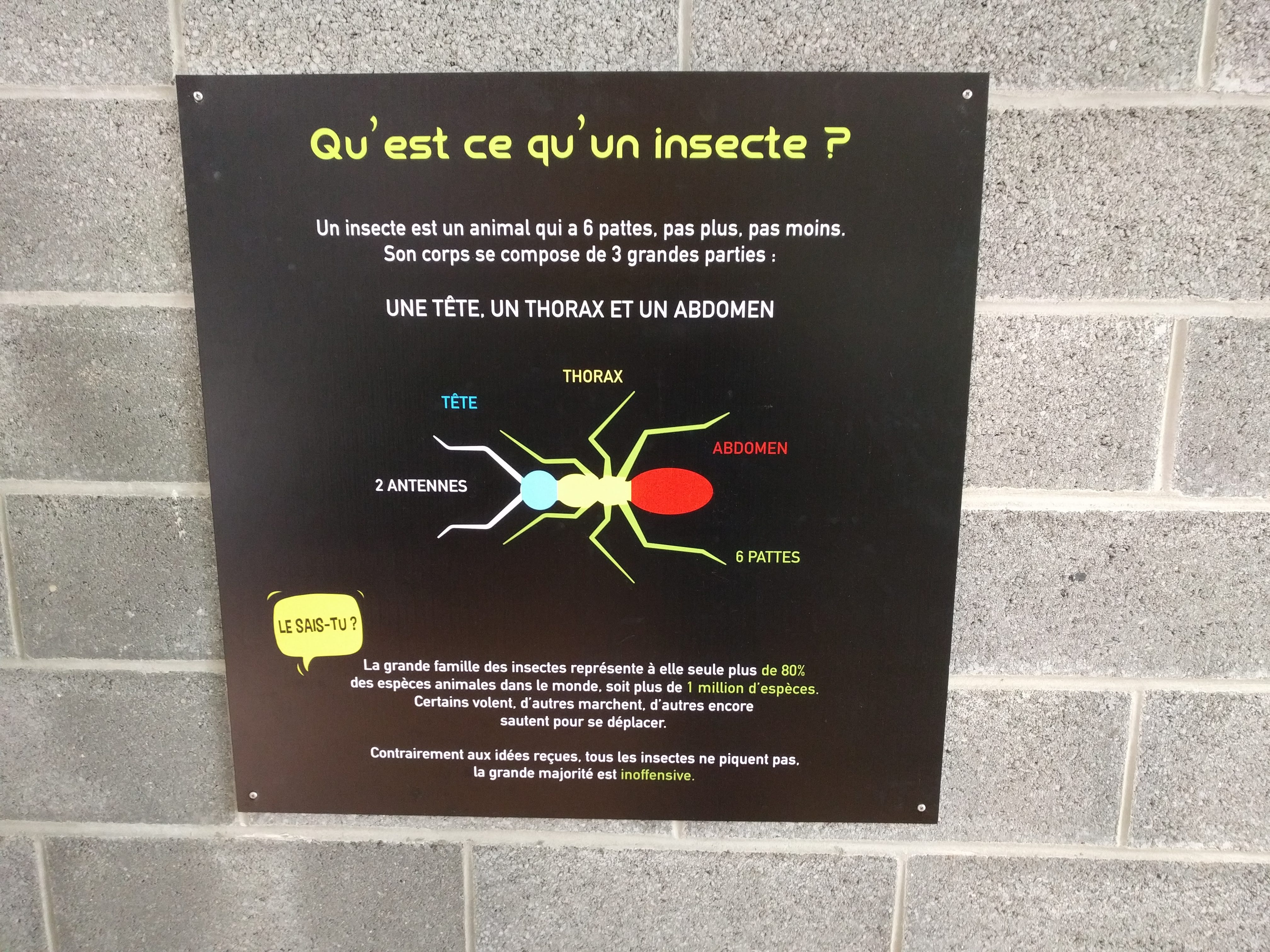 Je pensais qu'il y aurait plus d espèces d insectes. Le parcours des sens tres intéressant va être enlevé dommage. Beaucoup de choses à lire sur l expo qu'est-ce qu'on mange du coup moins adaptée aux maternelles. La partie recyclage est rigolote. La poubelle couverte d une robe en crochet est magnifique ! Si seulement ttes les poubelles pouvaient être aussi jolies dans la vie. Cela reste tout de même très correcte et les enfants s y amusent bien pour le tarif.